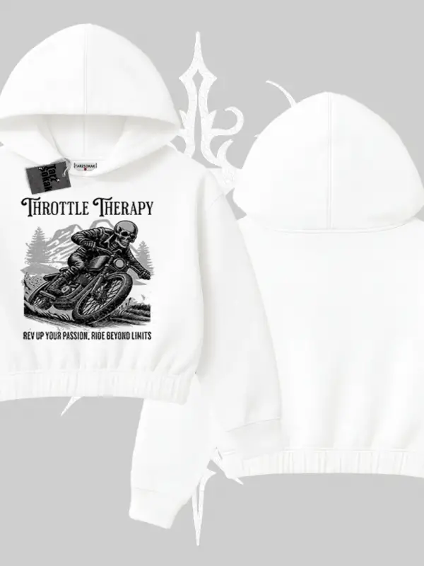 Kapşonlu Crop Sweatshirt Throttle Therapy No Brakes Just Freedom