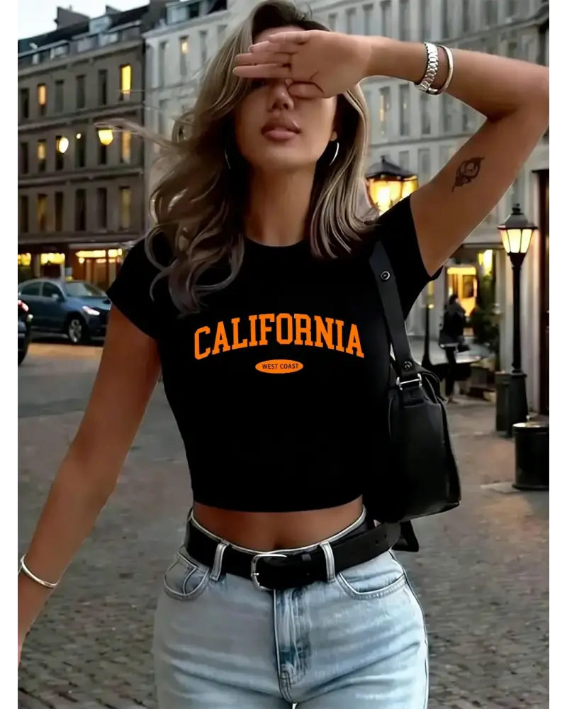 Kaliforniya Batı Sahili Baskılar Kadın Kırpma Tişörtleri Yaz Yumuşak Yüksek Elastik Üstler Y2 kaliteli malzeme ve konforlu kullanım sunan bir üründür. Günlük kullanım için ideal olup uygun fiyat ve hızlı kargo avantajıyla sunulmaktadır.