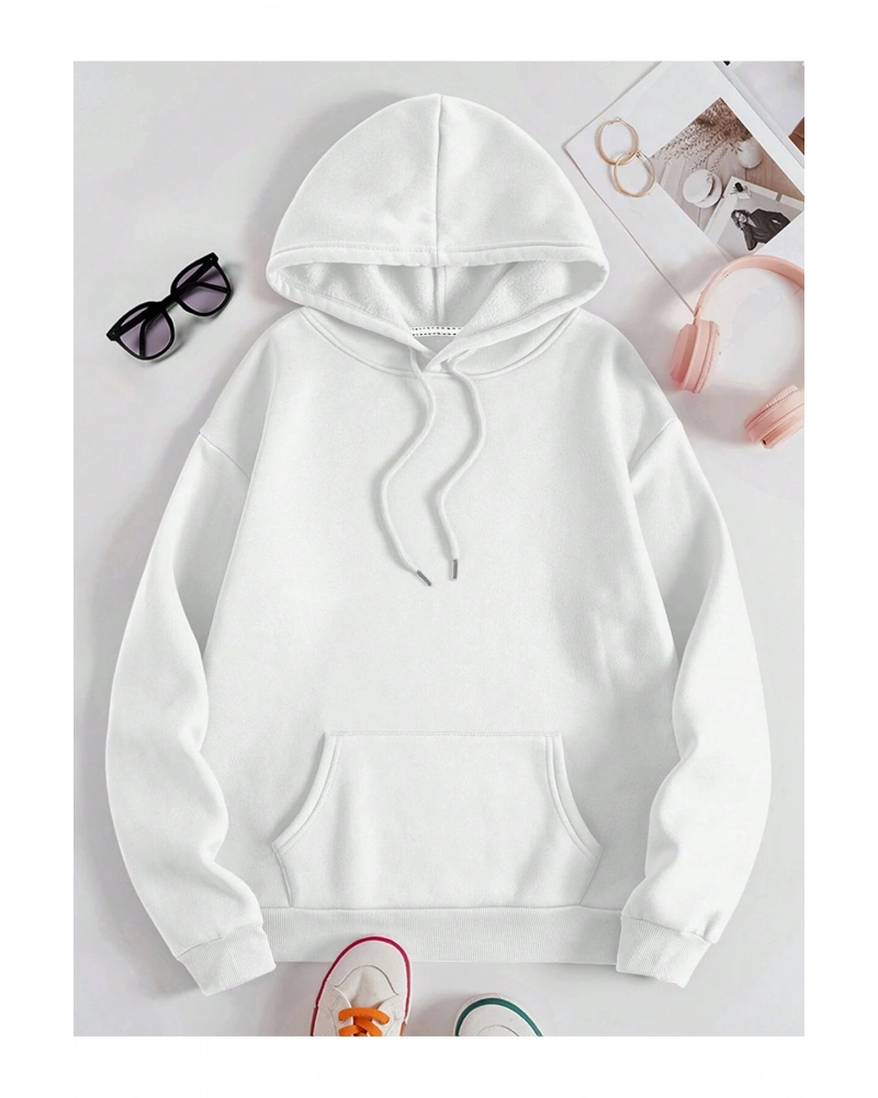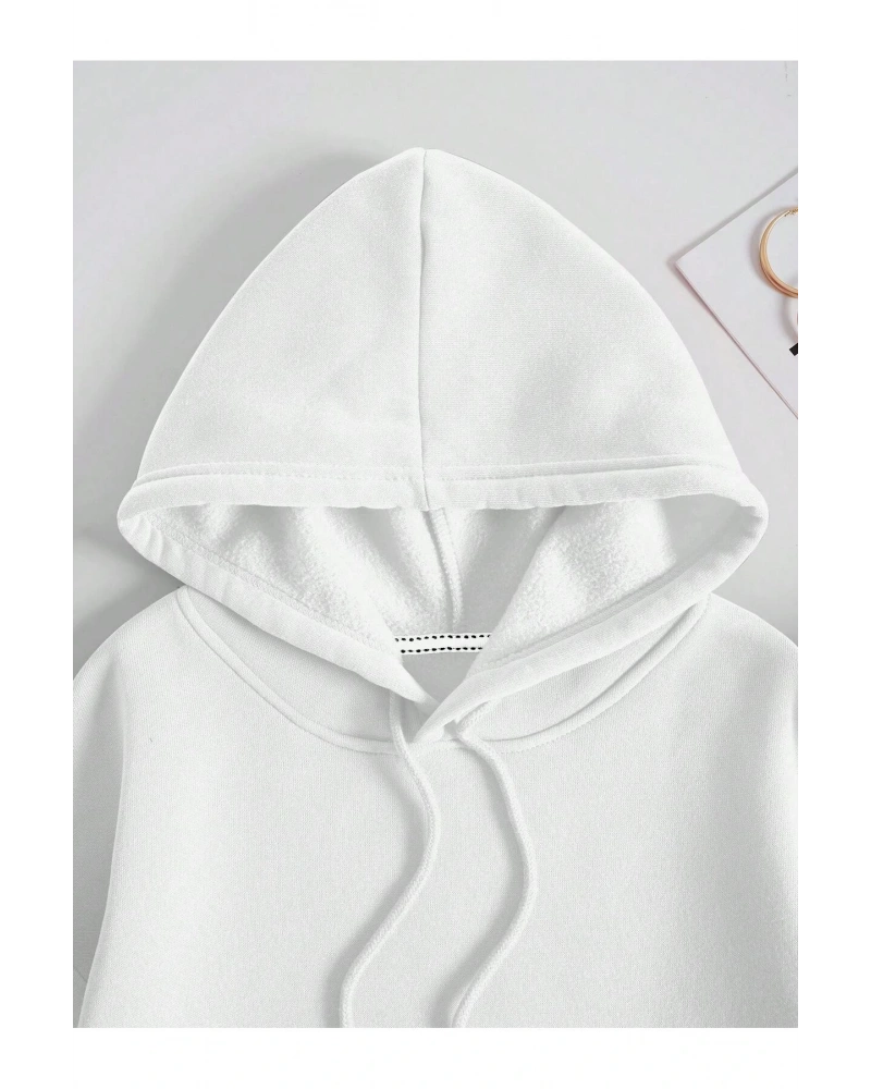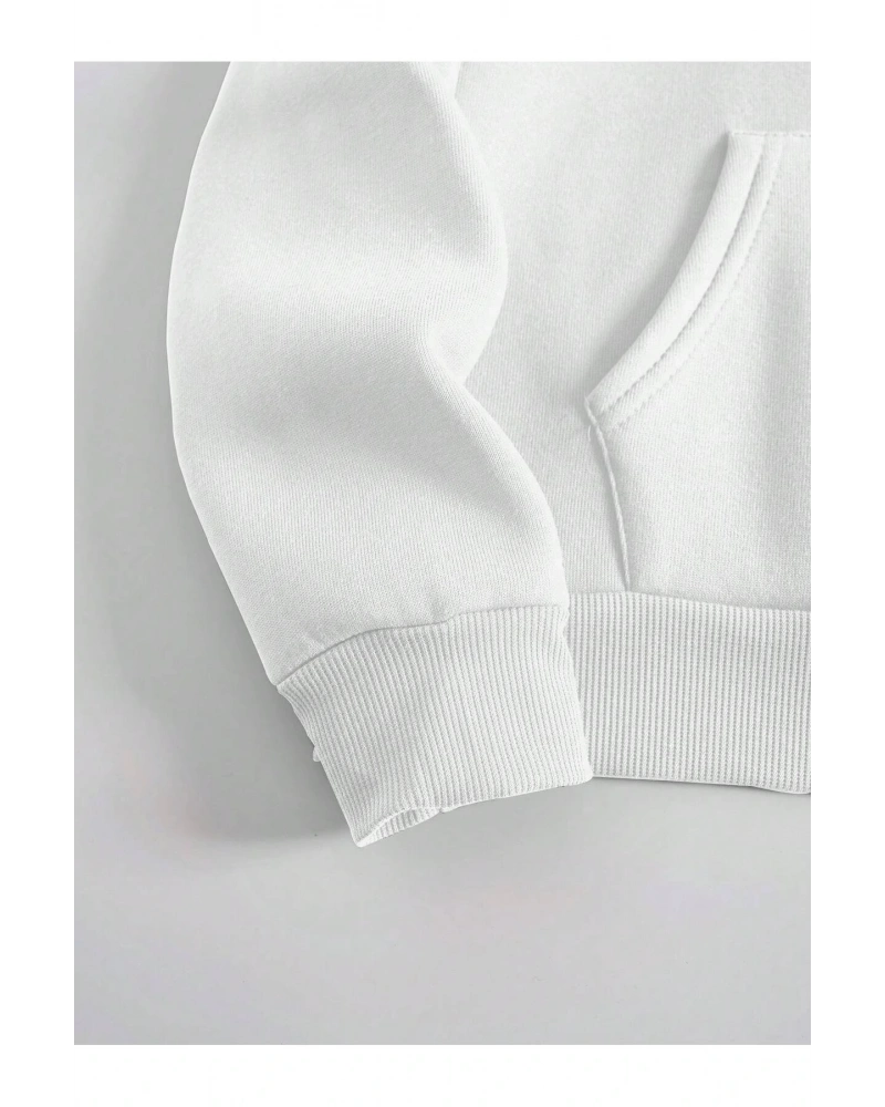 Kanguru Cepli İpli Kapşonlu Beyaz