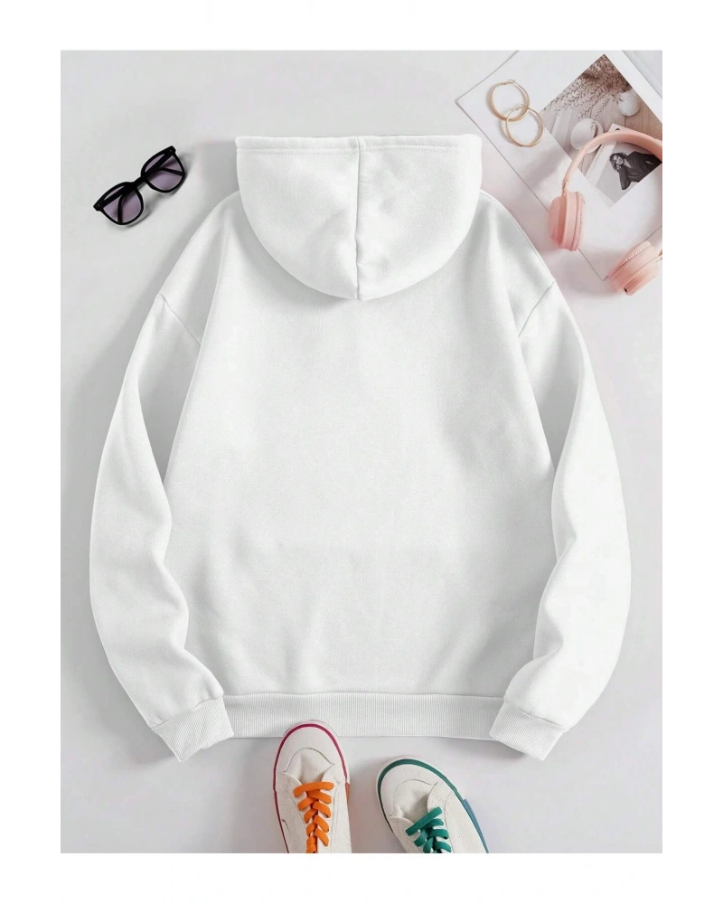 YQYQ----Oversize Mor Saçlı Lila Genç Kız Tasarım Baskılı Unisex Kapüşonlu Sweatshirt Hoodie Beyaz