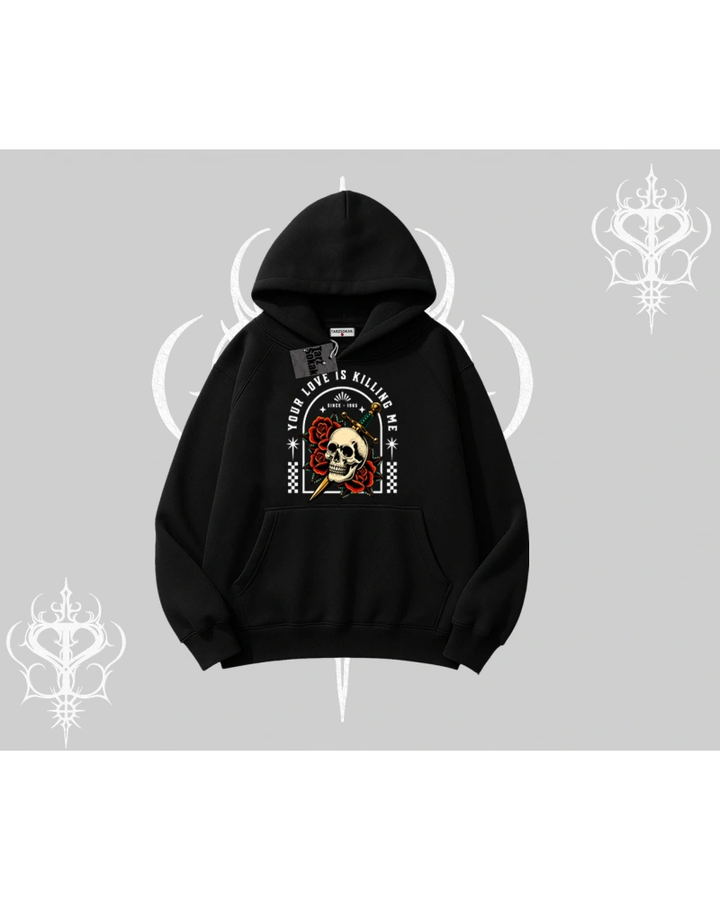 Kapşonlu Sweatshirt Your Love Is Killing Me Dead Romance modeli; sokak modası, günlük kullanım ve trend kombinler için ideal yapısıyla Tarzsokak’ta uygun fiyat ve hızlı kargo avantajıyla sunulmaktadır.