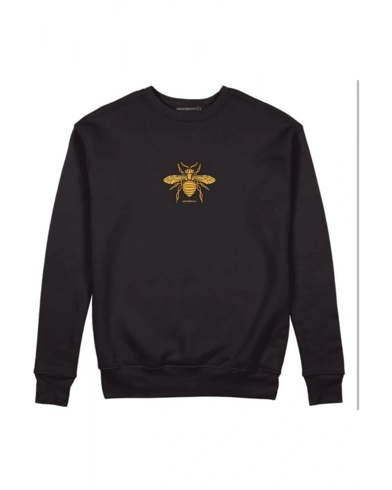 Kapşonsuz Arı Baskılı Pamuklu Siyah Sweatshirt