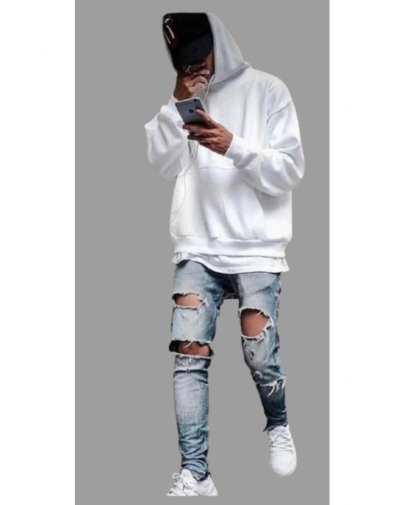 Kapüşonlu Oversize Çok Kalın 4 Iplik Pamuk Yeni Kreasyon Erkek Hoodie Sweatshırt Beyaz