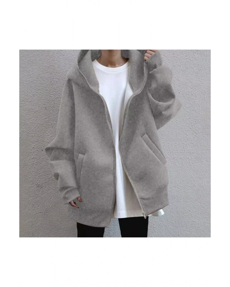 Kapüşonlu Tam Fermuarlı Kışlık Süper Oversize Salaş Kadın Hoodie-sweatshırt LDYSOJ1 Gri