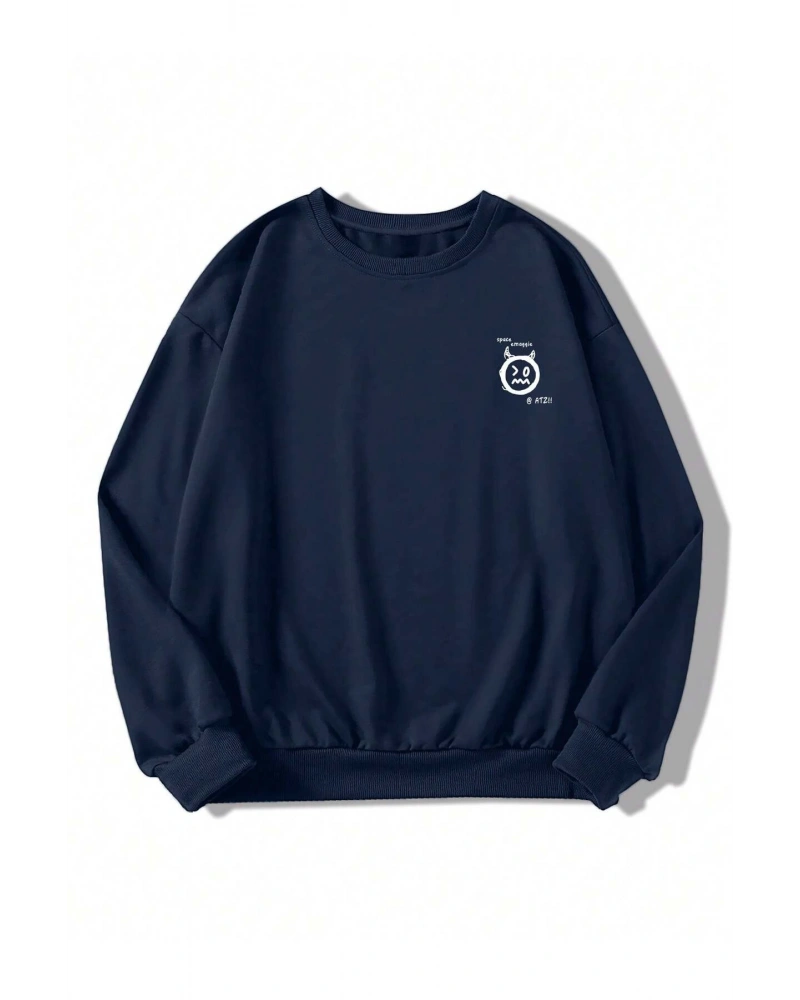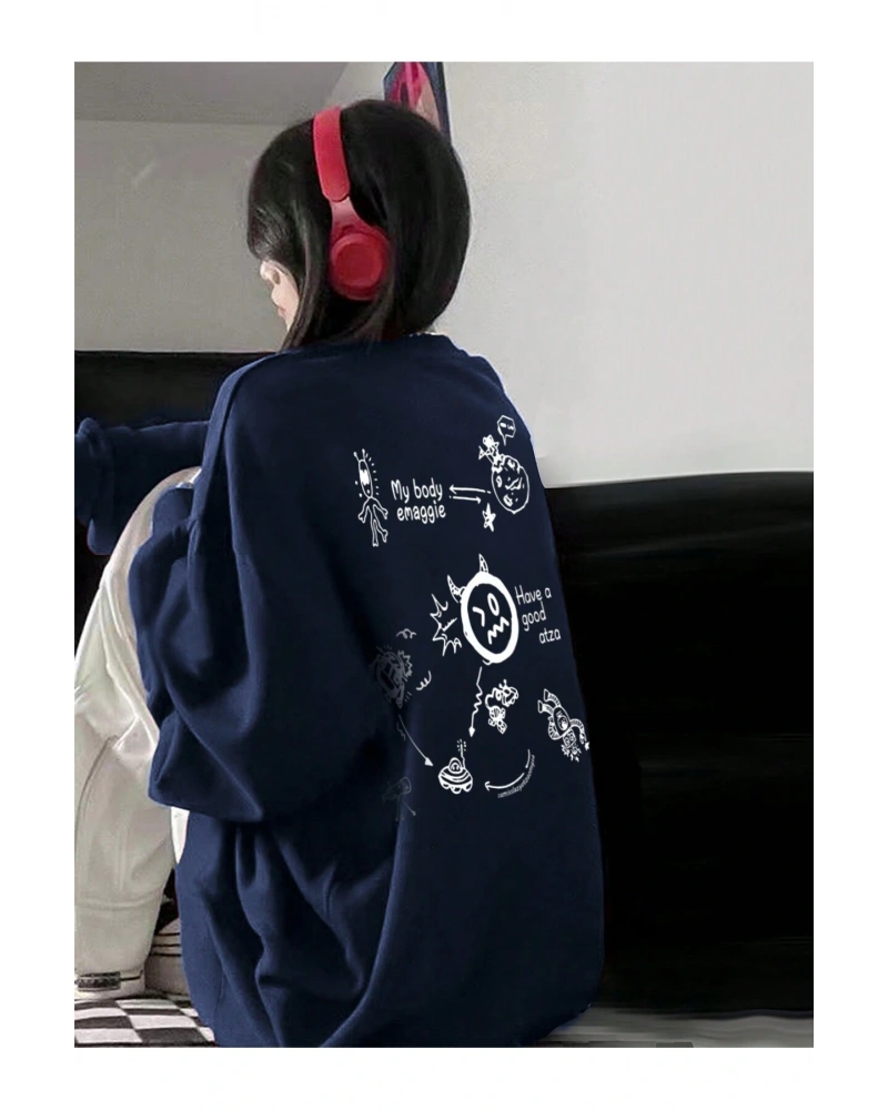 Karikatür & Harf Grafik Düşük Omuz Oversize Sweat Lacivert
