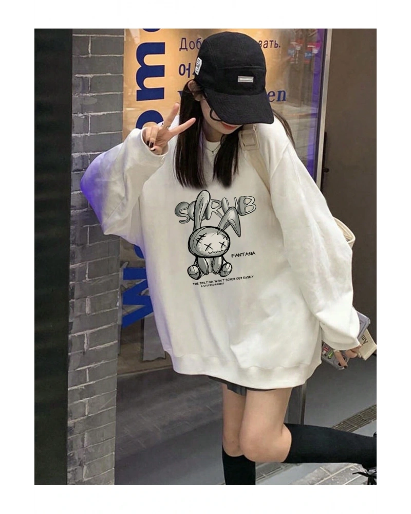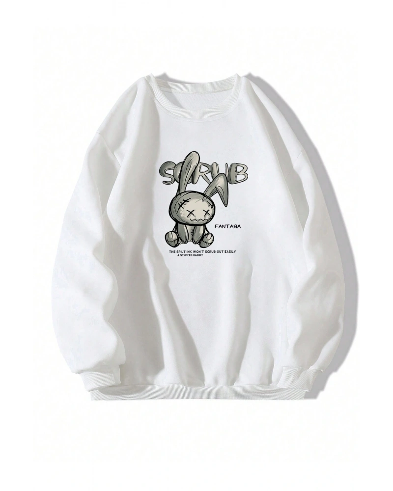 Karikatür & Slogan Grafikli Düşük Omuz Oversize Sweat Beyaz
