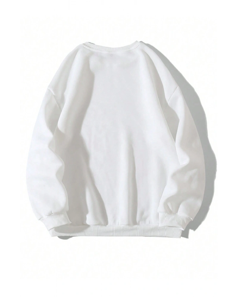 Manfinity EMRG Cartoon And Slogan Graphic Sweatshirt Beyaz