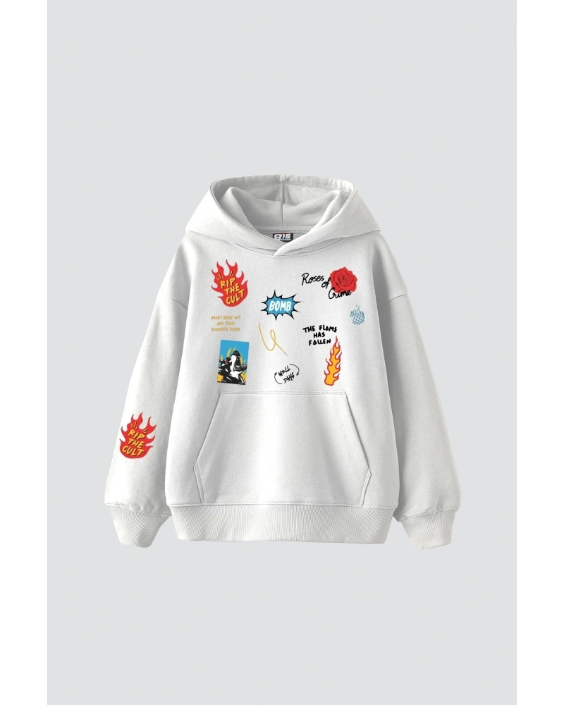 YQYQ----Oversize Powerpuff Girls Tasarım Baskılı Kapüşonlu Sweatshirt Hoodie Beyaz