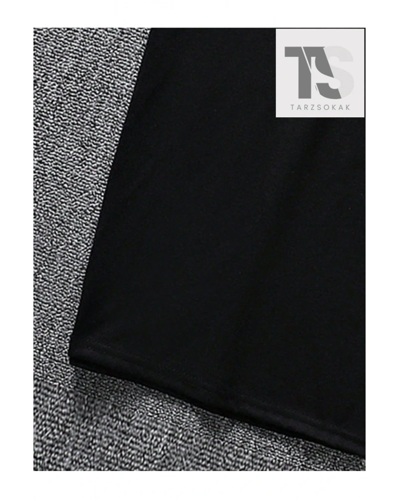 Siyah Oversize Çift Renk TÜY Baskılı Unisex Tshirt