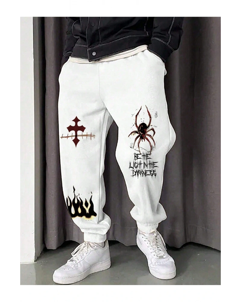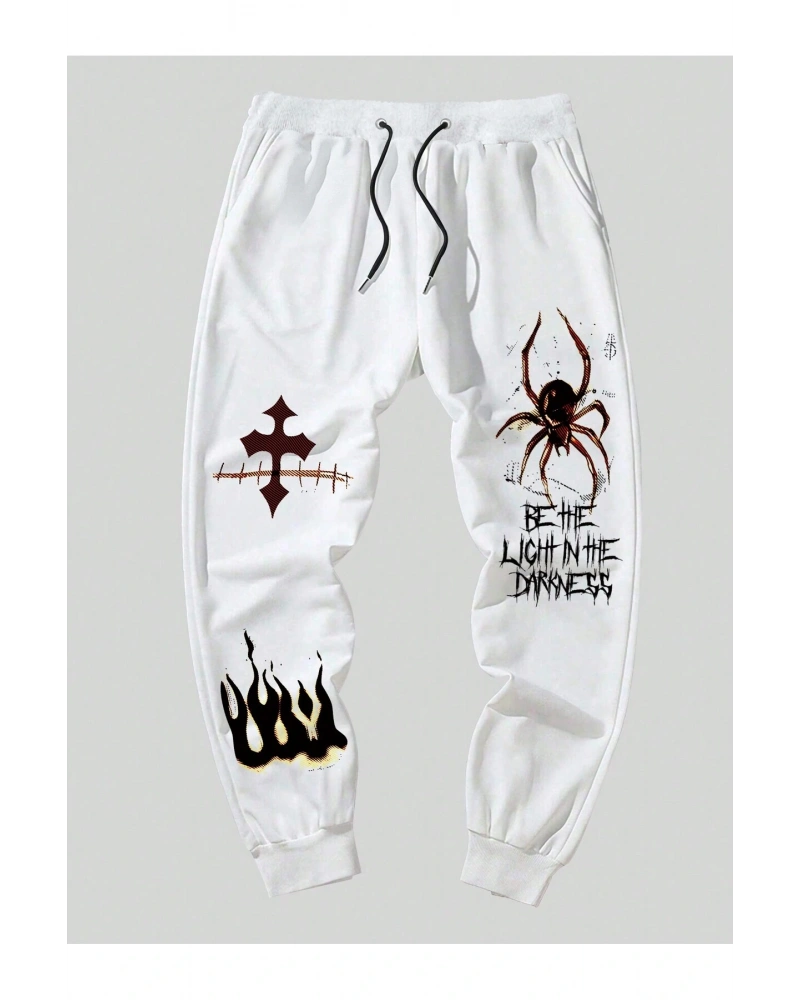 Cartoon Face & Slogan Graphic Drawstring Waist Eşofman Altı