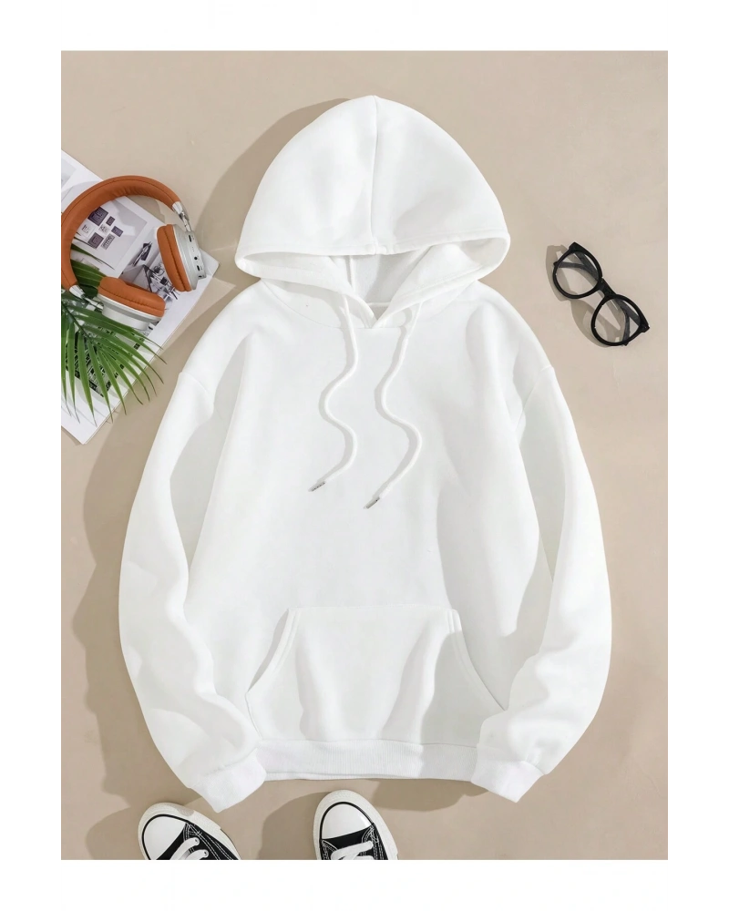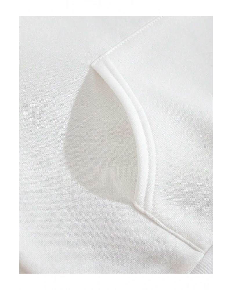 Katı Kanguru Cepli İpli Kapüşonlu Üst Beyaz