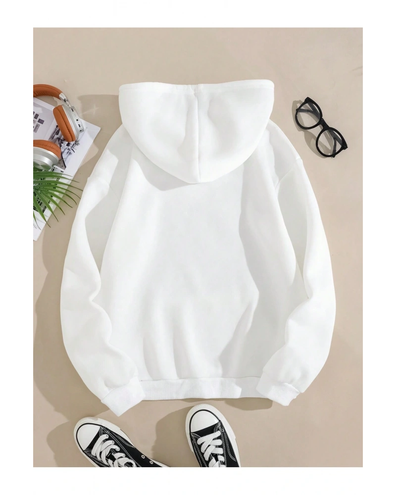 YQYQ----Oversize Mor Saçlı Lila Genç Kız Tasarım Baskılı Unisex Kapüşonlu Sweatshirt Hoodie Beyaz