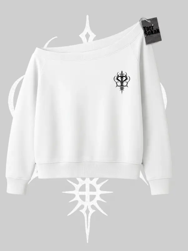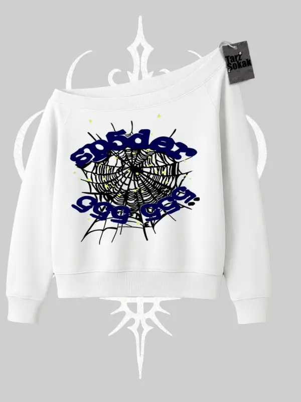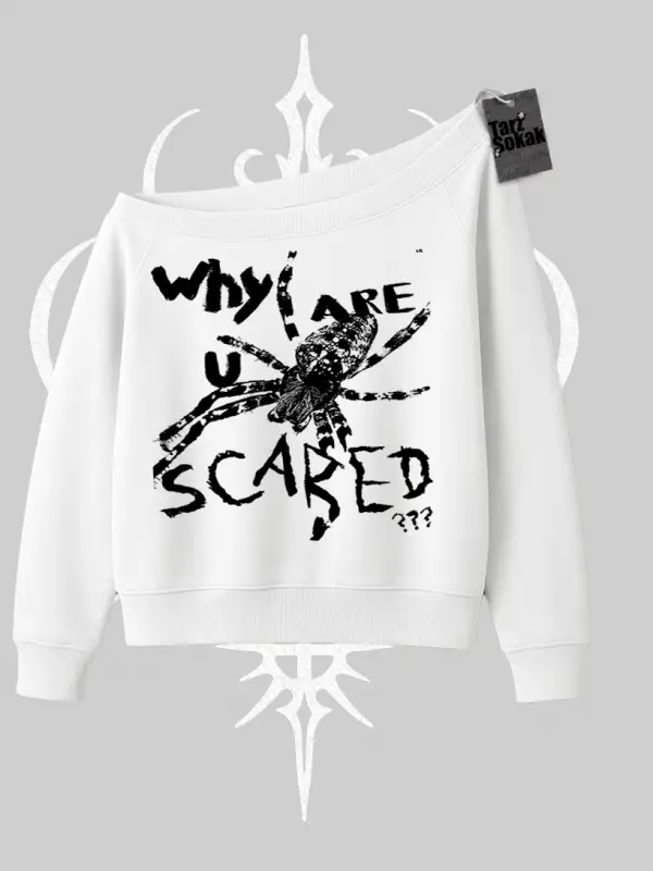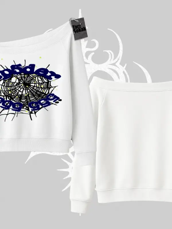 Beyaz Kayık Yaka Sweatshirt Autumn Spider