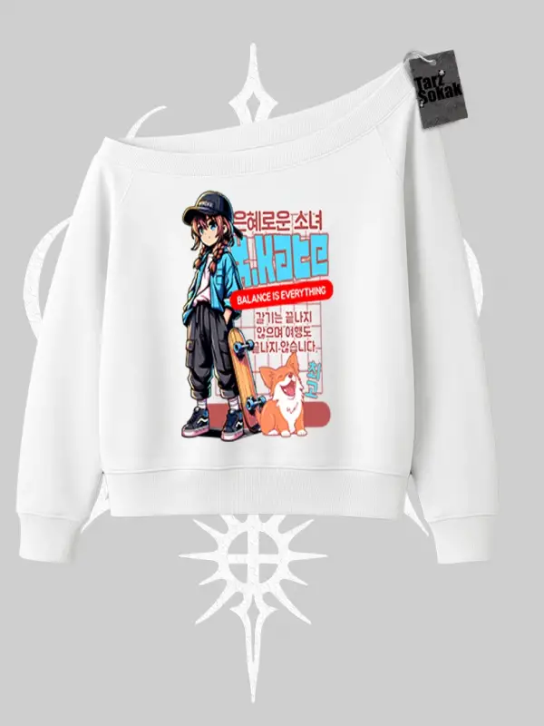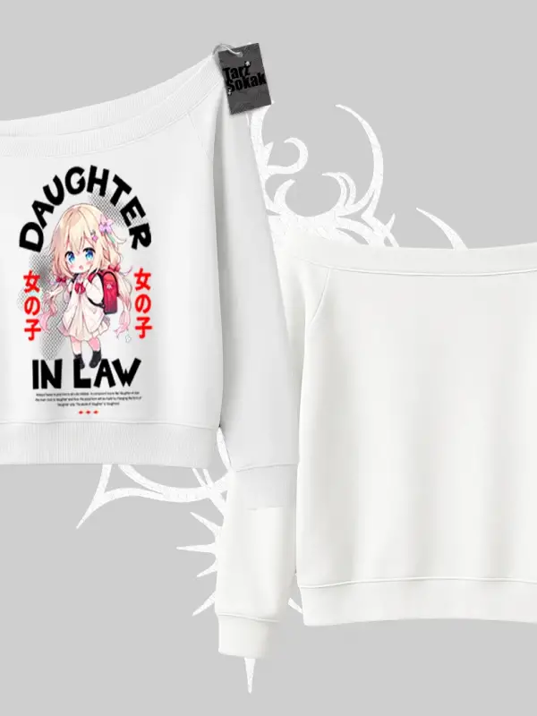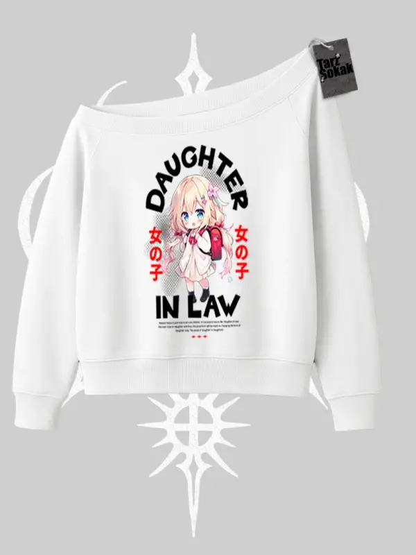 Kayık Yaka Sweatshirt Anime Girl Daughter In Law Baskılı