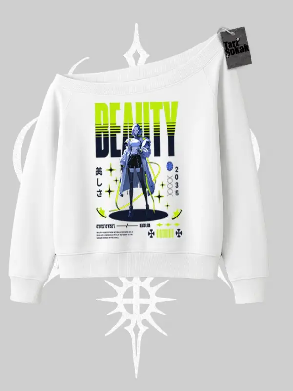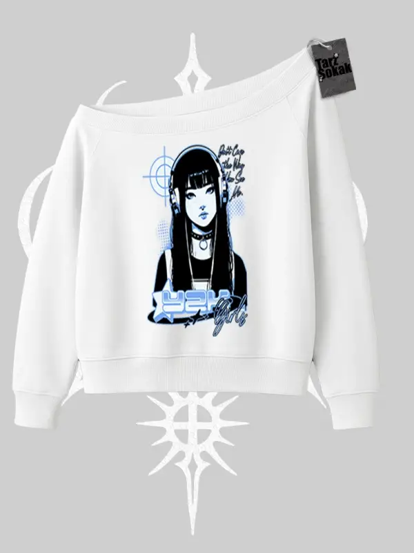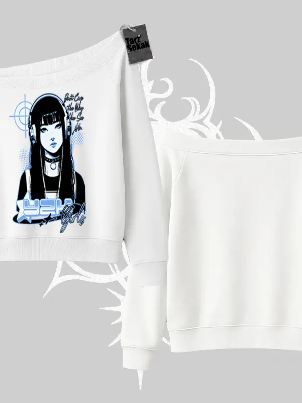 Kayık Yaka Sweatshirt Cyber Y2K Anime Girl Street Sound Aesthetic