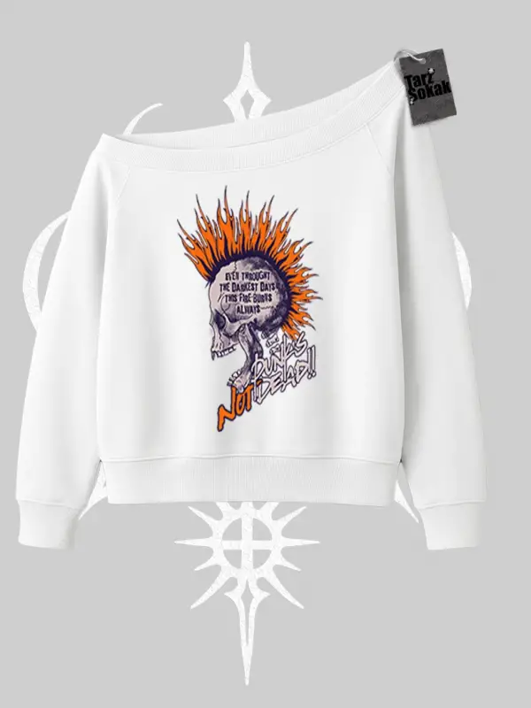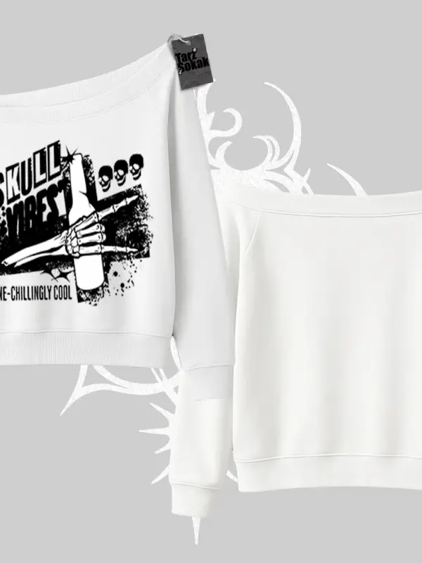 Kayık Yaka Sweatshirt Skull Impact Bone Chilling Street Icon