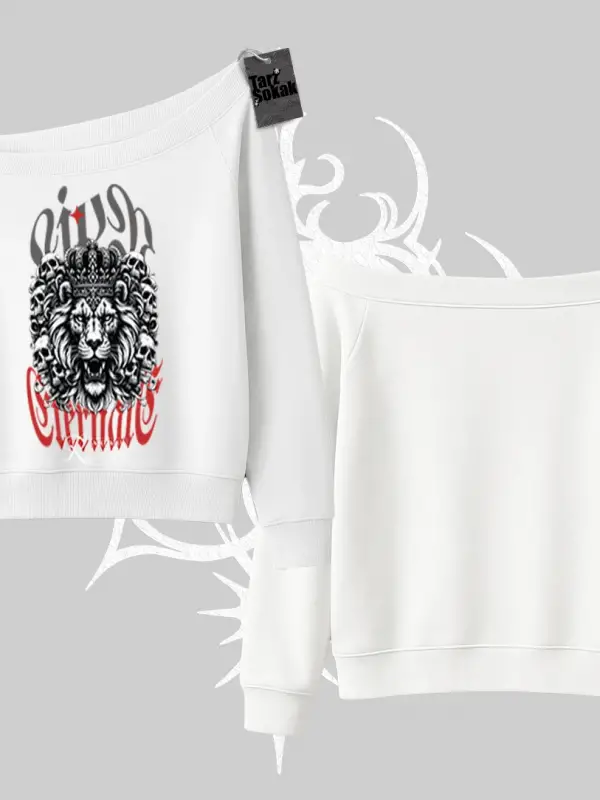 Kayık Yaka Sweatshirt Crowned Lion Rock Authority Myth