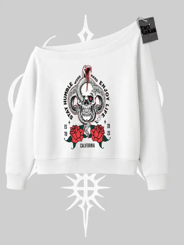 Kayık Yaka Sweatshirt Stay Humble Work Hard Enjoy Life