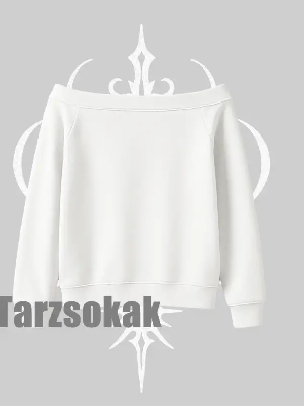 Beyaz Kayık Yaka Sweatshirt Vampir Dış