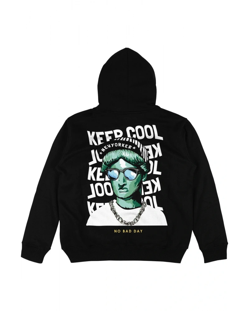 Keep Cool Siyah Oversize Unisex Kapüşonlu Sweatshirt Hoodie