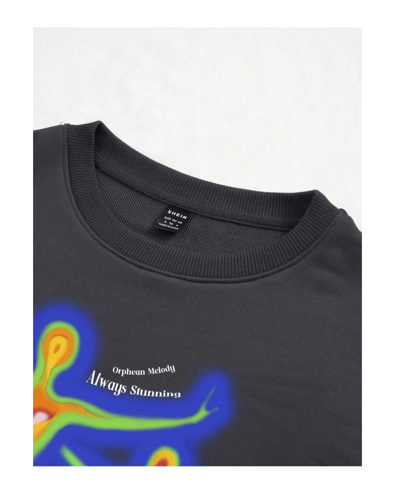 Siyah Yakasız Tüy Baskılı Unisex Sweatshirt