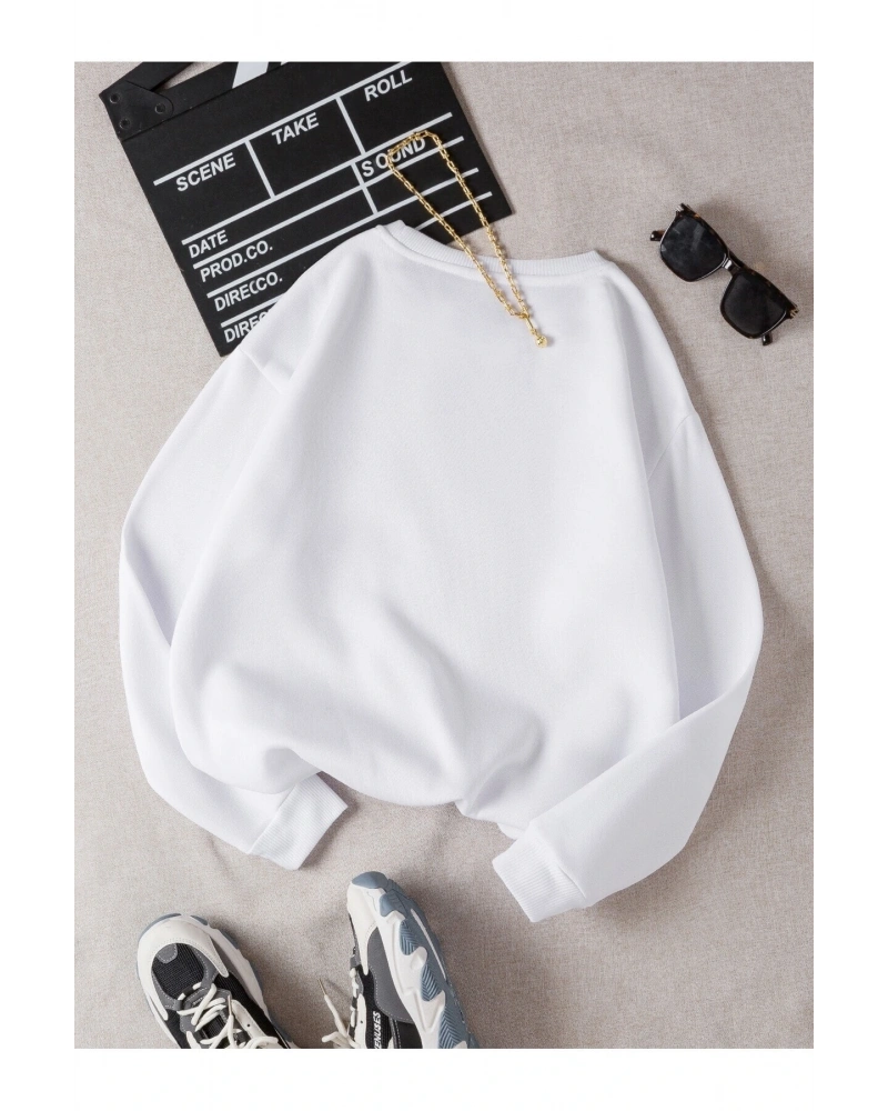 Manfinity EMRG Cartoon And Slogan Graphic Sweatshirt Beyaz