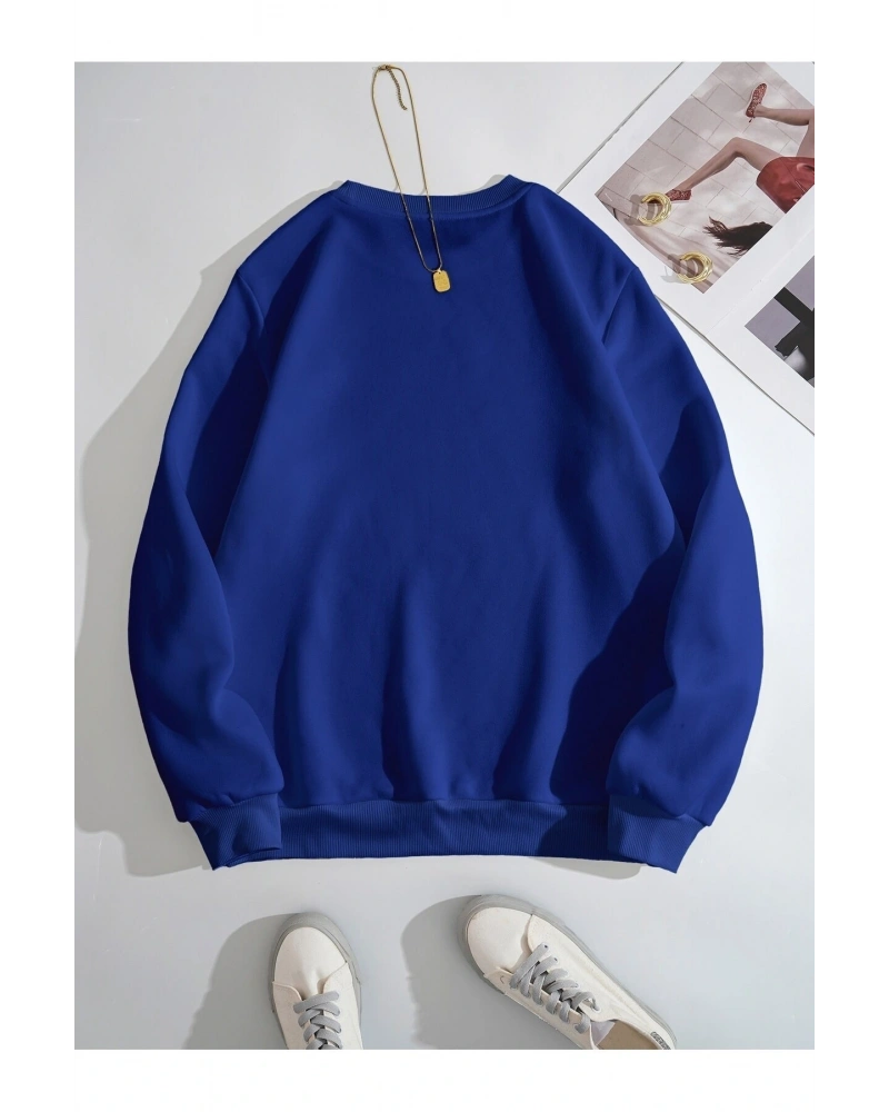 Siyah Yakasız Tüy Baskılı Unisex Sweatshirt
