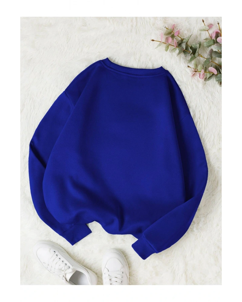 Karikatür & Harf Grafik Düşük Omuz Oversize Sweat Lacivert