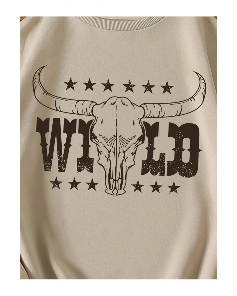 KOD ADR-SHEN LUNE Cattle & Letter Graphic Thermal Lined Sweatshirt
