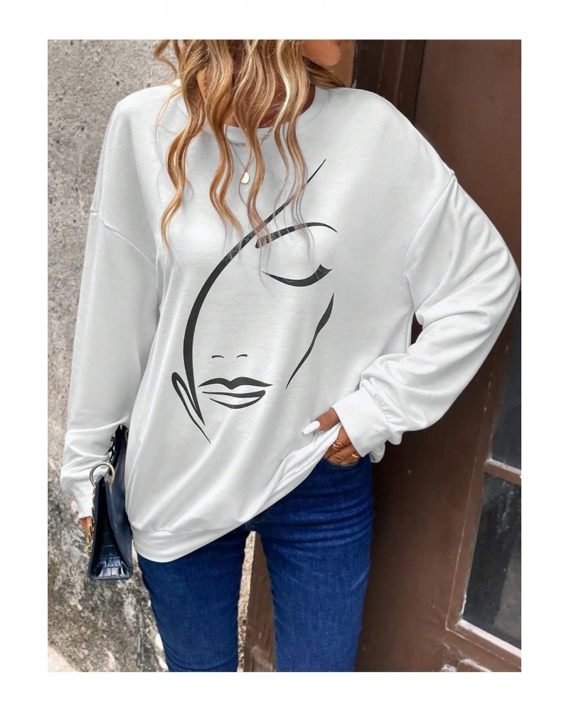 KOD ADR-SHEN LUNE Figure Graphic Drop Shoulder Sweatshirt Beyaz
