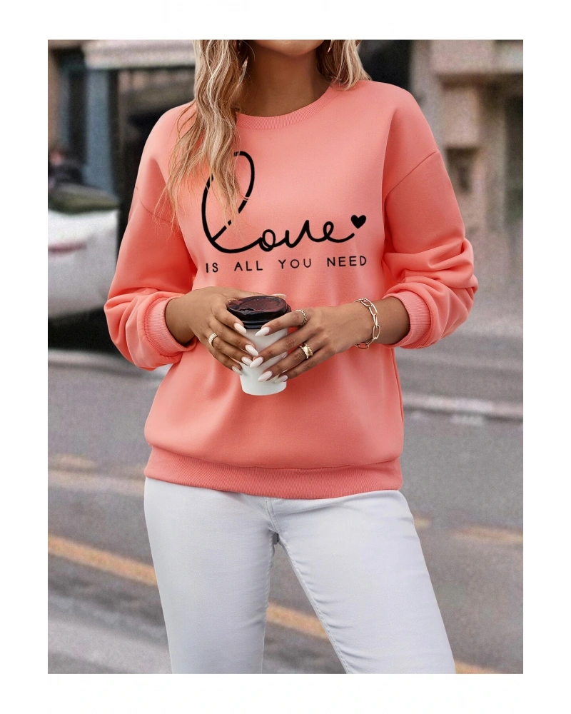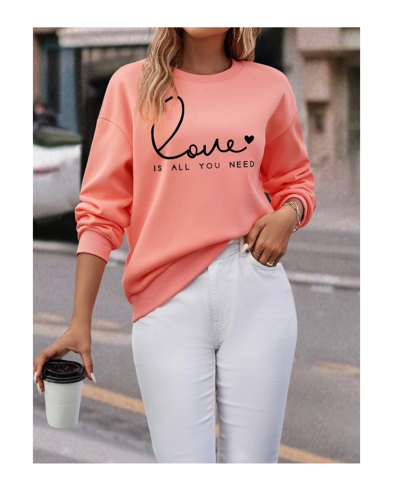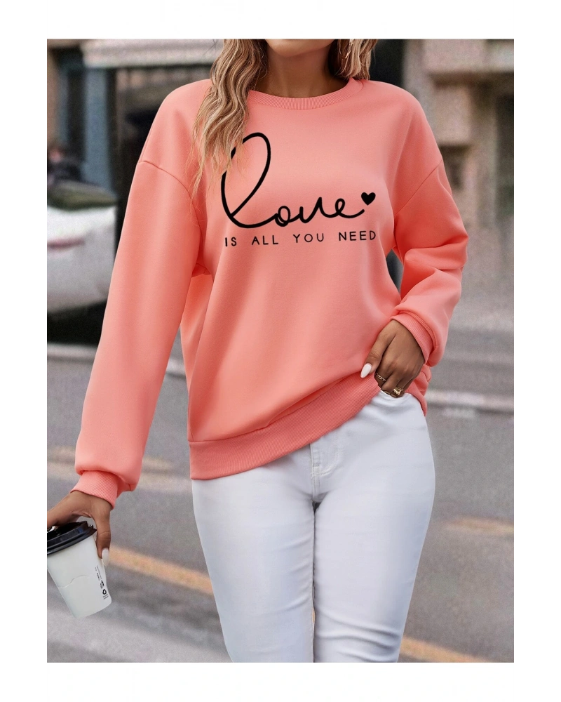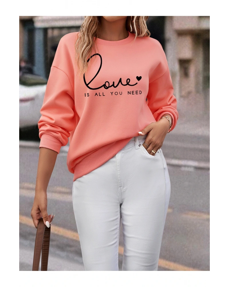 KOD ADR-SHEN LUNE Heart And Slogan Graphic Drop Shoulder Sweatshirt Pembe