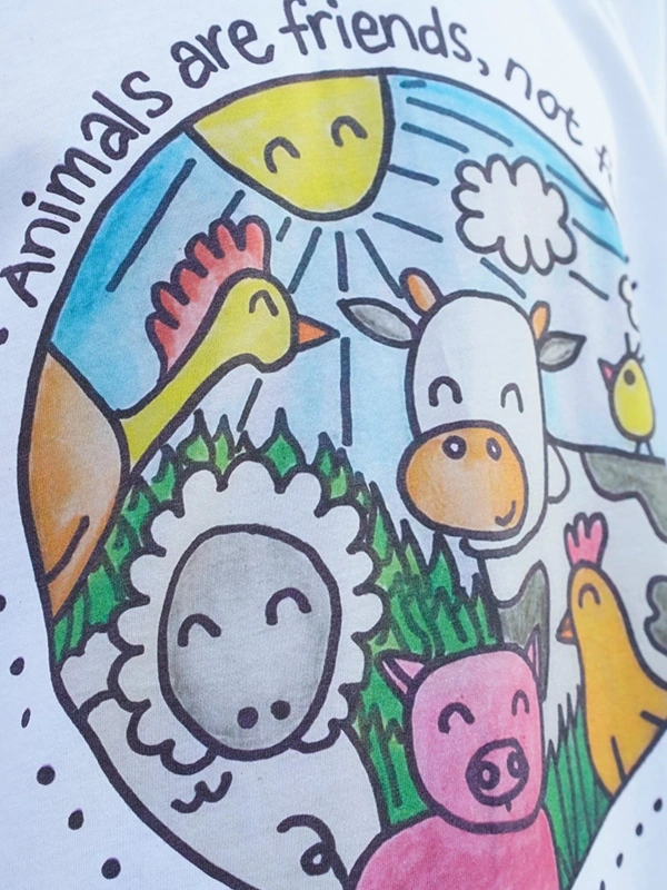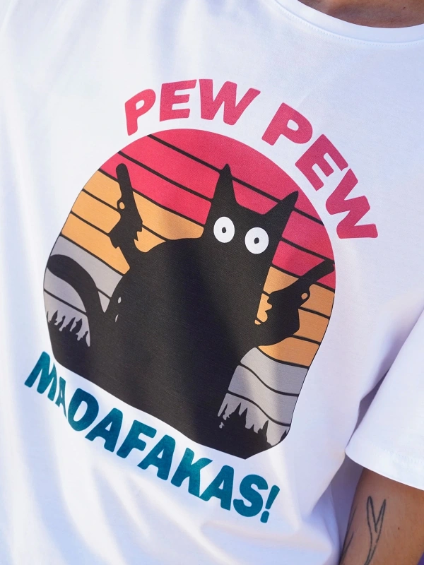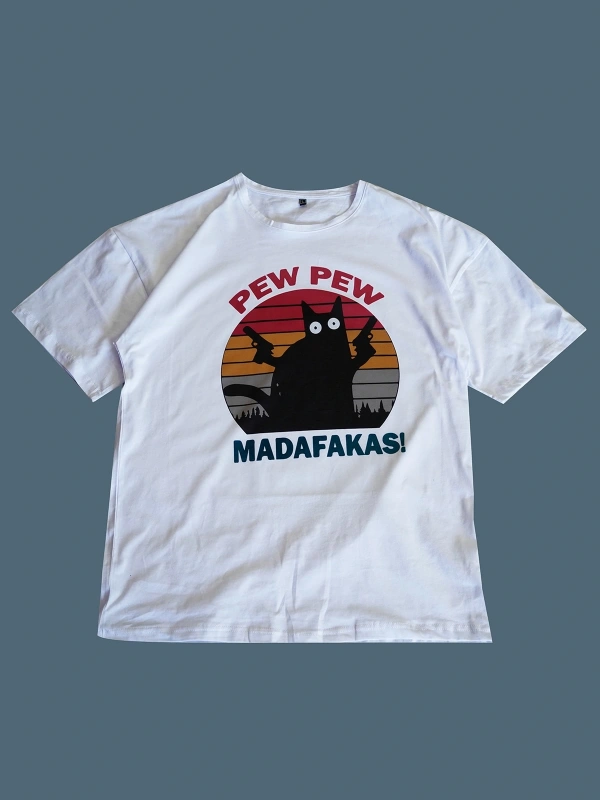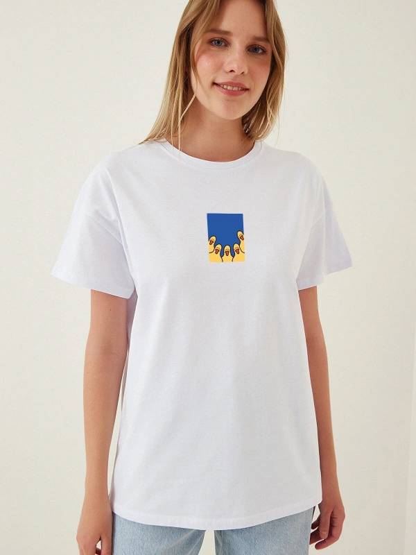 Kadın Beyaz Ördek Baskılı Bisiklet Yaka Oversize Pamuklu T-shirt