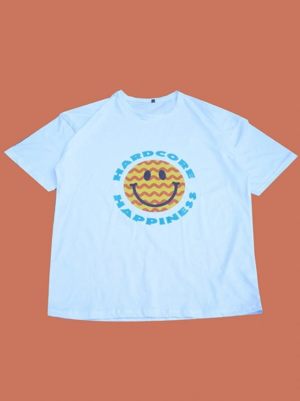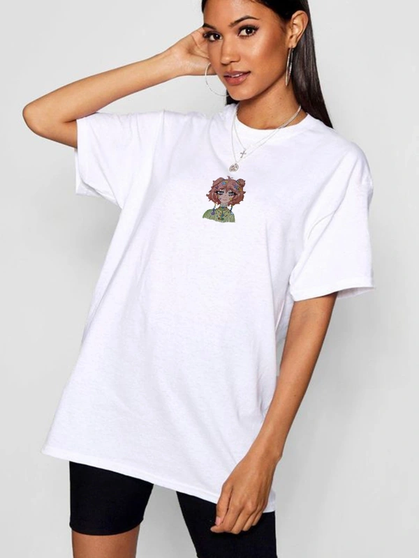 Kadın Beyaz Anime Kız Baskılı Bisiklet Yaka Oversize Pamuklu T-shirt