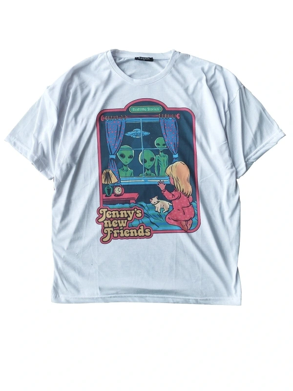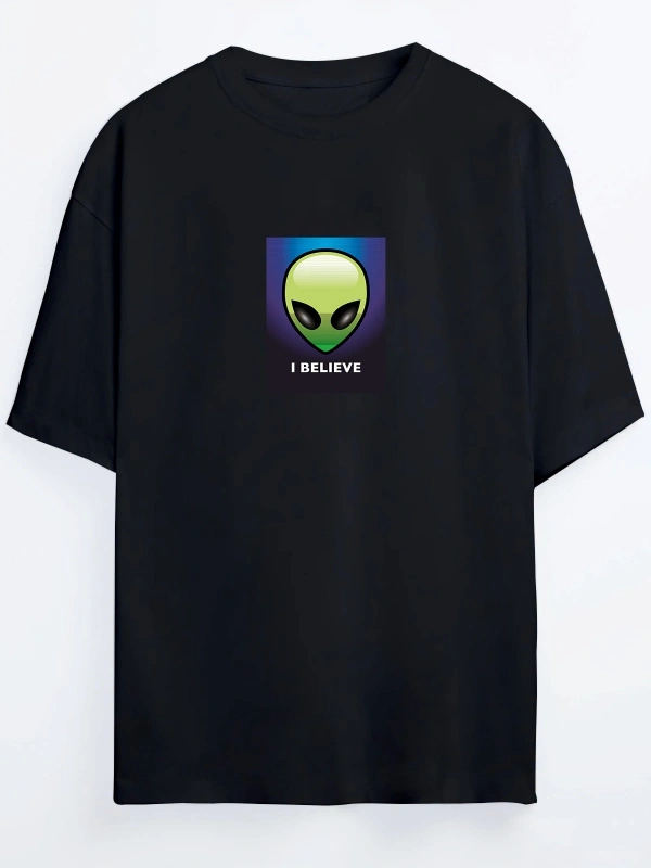 Uzaylı Baskılı Oversize Unisex T-shirt