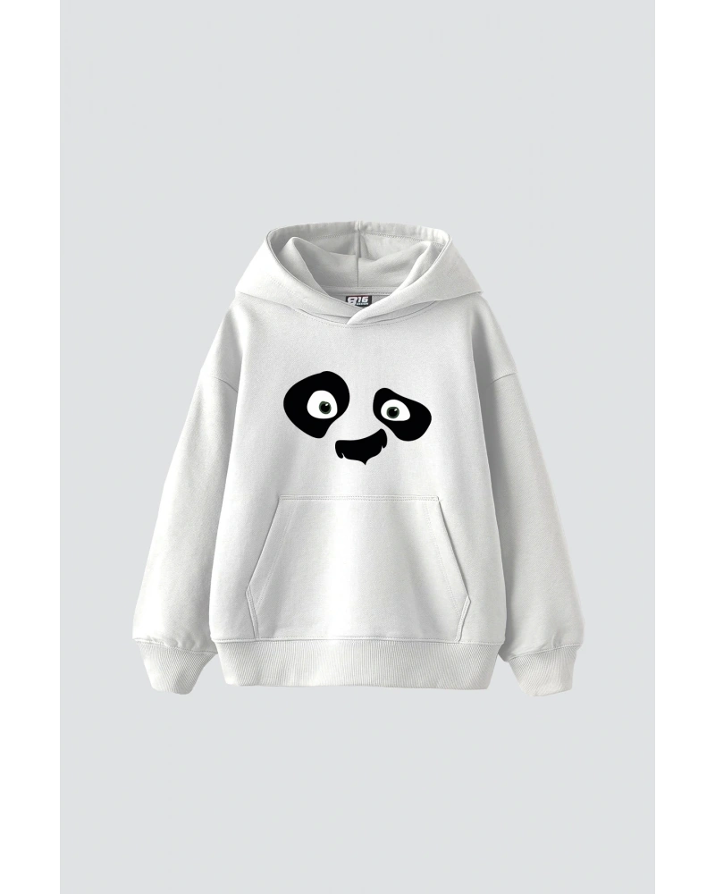 YQYQ----Oversize Sevimli Panda Cep Tasarımlı Baskılı Kapüşonlu Sweatshirt Hoodie Beyaz