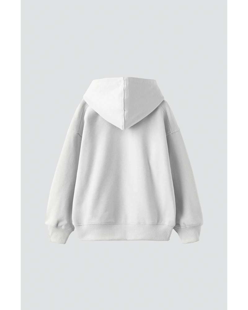 YQYQ----Oversize Araba Nissan Tasarım Baskılı Kapüşonlu Sweatshirt Hoodie Beyaz
