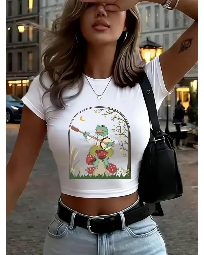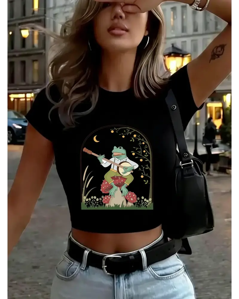 Kurbağa Mantar Üzerinde Banjo Çalıyor Baskılı Kadın Babby TeeTişörtleri Yazlık Yüksek Esnek Yumuş kaliteli malzeme ve konforlu kullanım sunan bir üründür. Günlük kullanım için ideal olup uygun fiyat ve hızlı kargo avantajıyla sunulmaktadır.