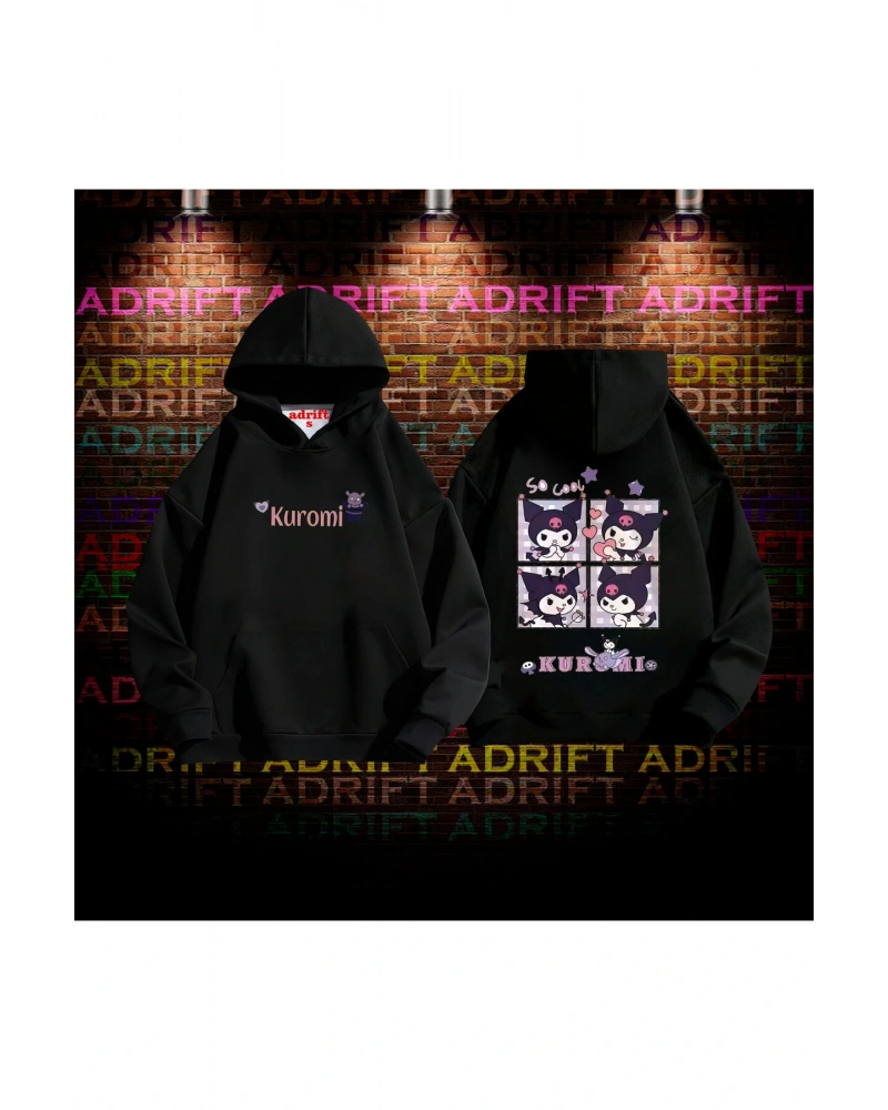 KUROMİ Tasarım Baskılı Kapüşonlu Sweatshirt Hoodie Siyah