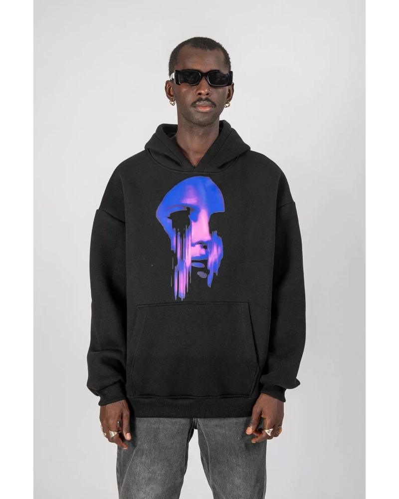 Oversize Unisex Siyah Yaşam Çiçeği Hoodie