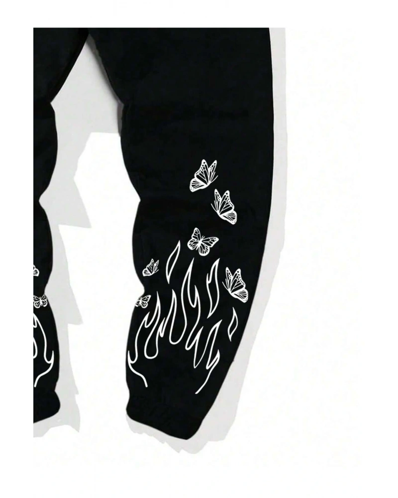 LEGND Fire & Letter Graphic Drawstring Waist Eşofman Altı