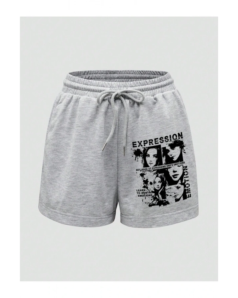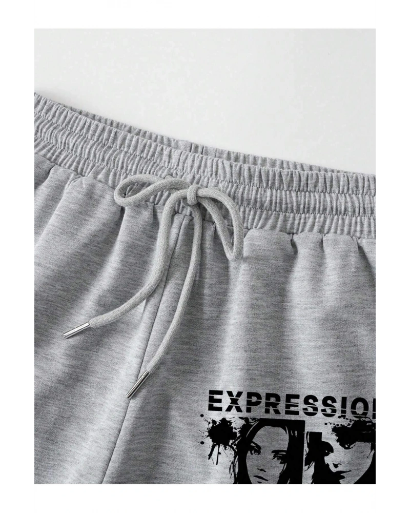 Letter Cartoon Graphic Drawstring Waist Track Şort
