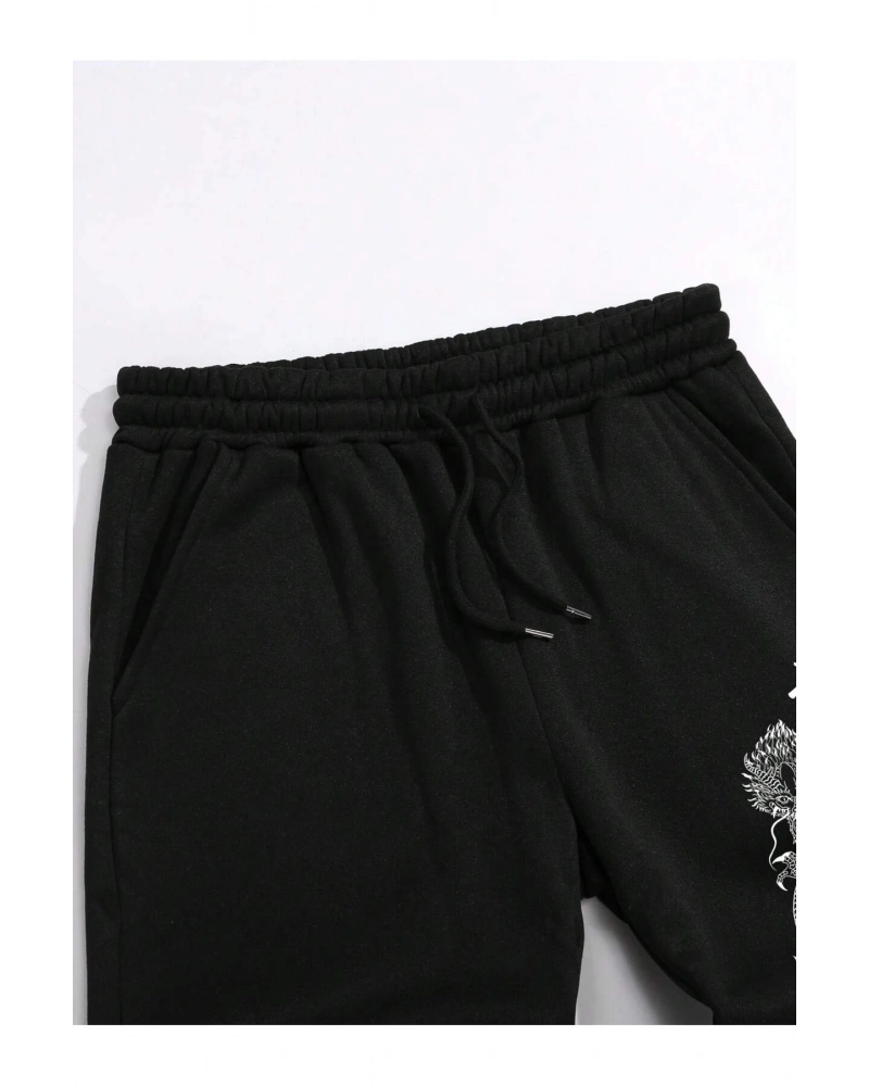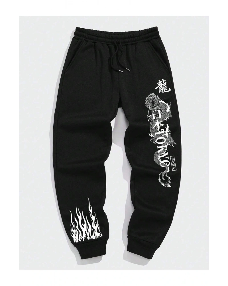 Letter & Fire Print Drawstring Waist Eşofman Altı
