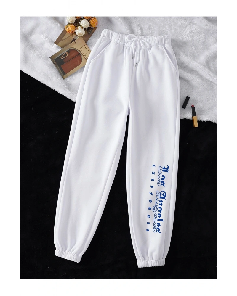 Letter Graphic Drawstring Waist 4 Mevsim Eşofman