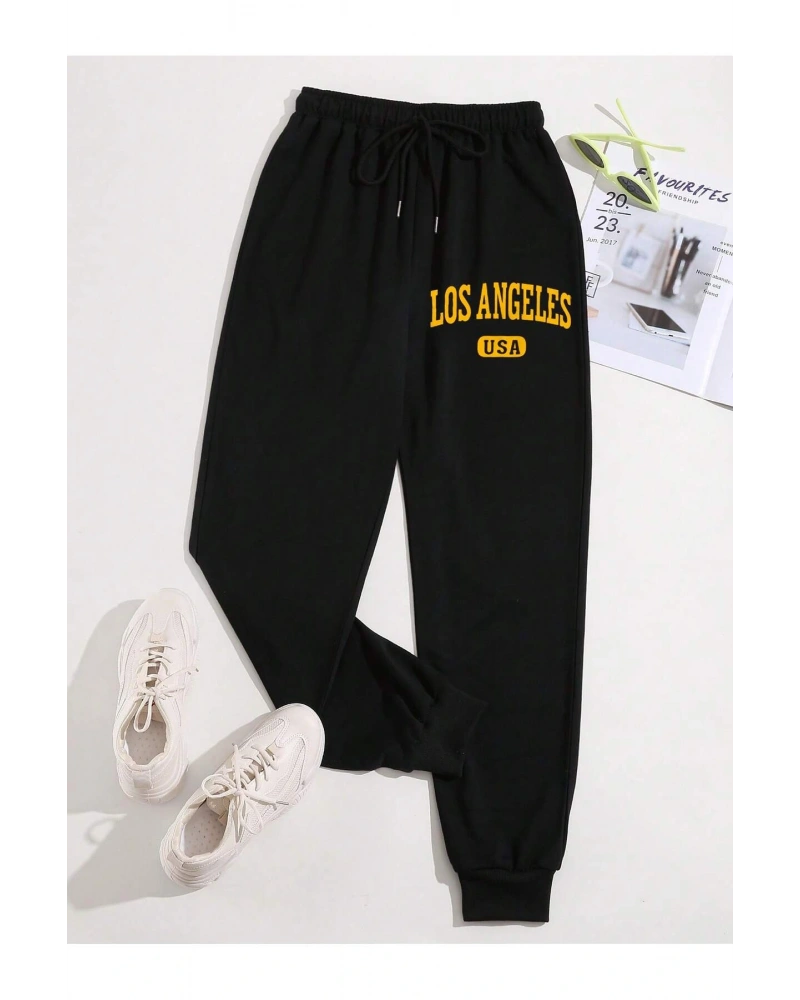 Letter Graphic Drawstring Waist 4 Mevsim Eşofman