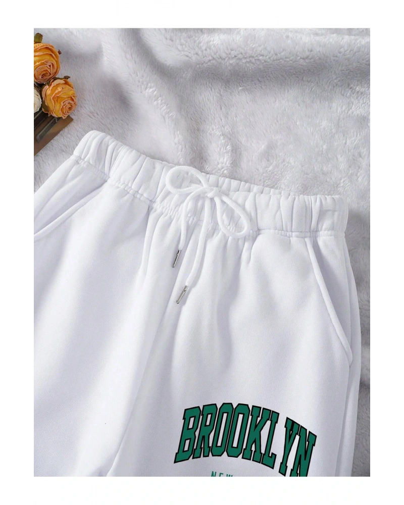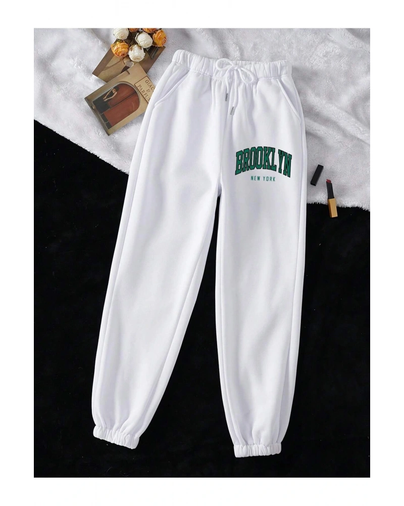 Letter Graphic Drawstring Waist 4 Mevsim Eşofman