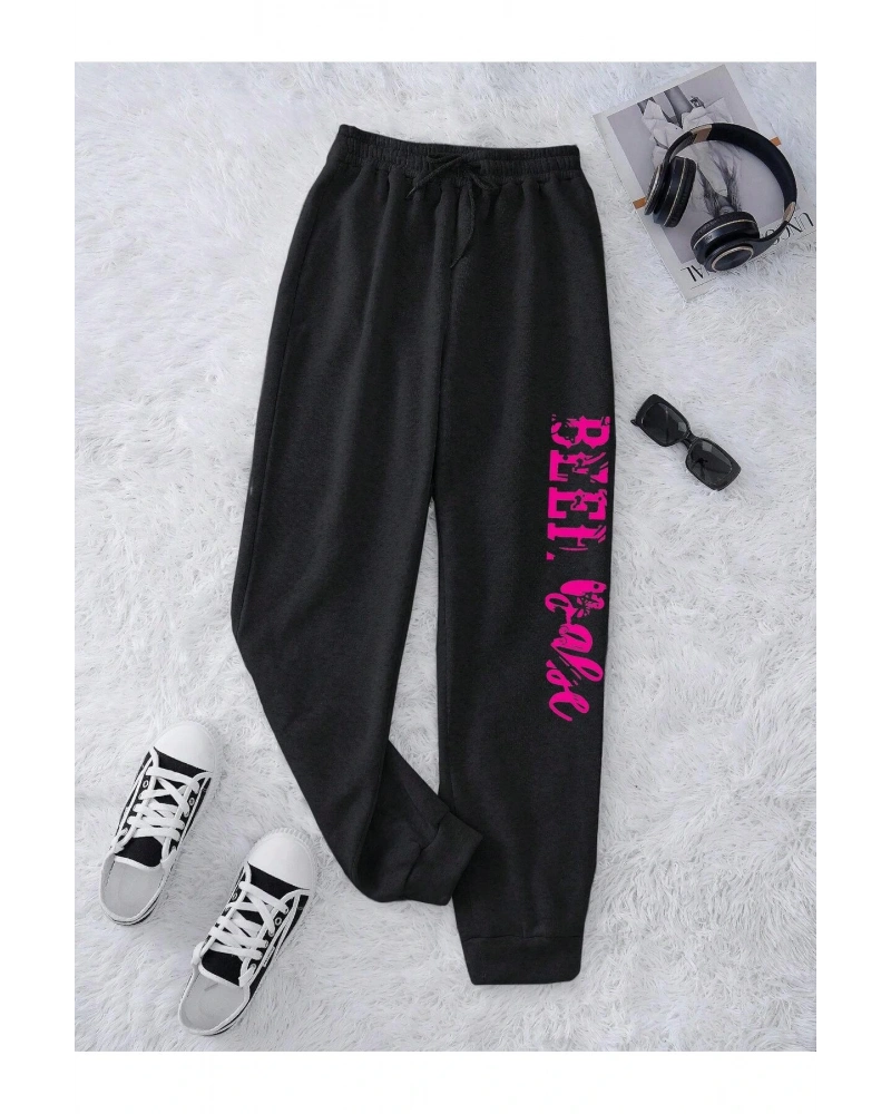 Letter Graphic Drawstring Waist 4 Mevsim Eşofman