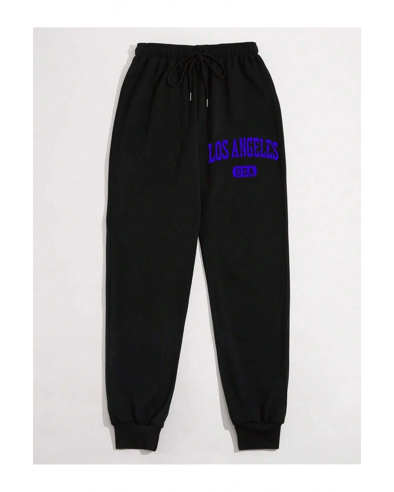 Letter Graphic Drawstring Waist 4 Mevsim Eşofman