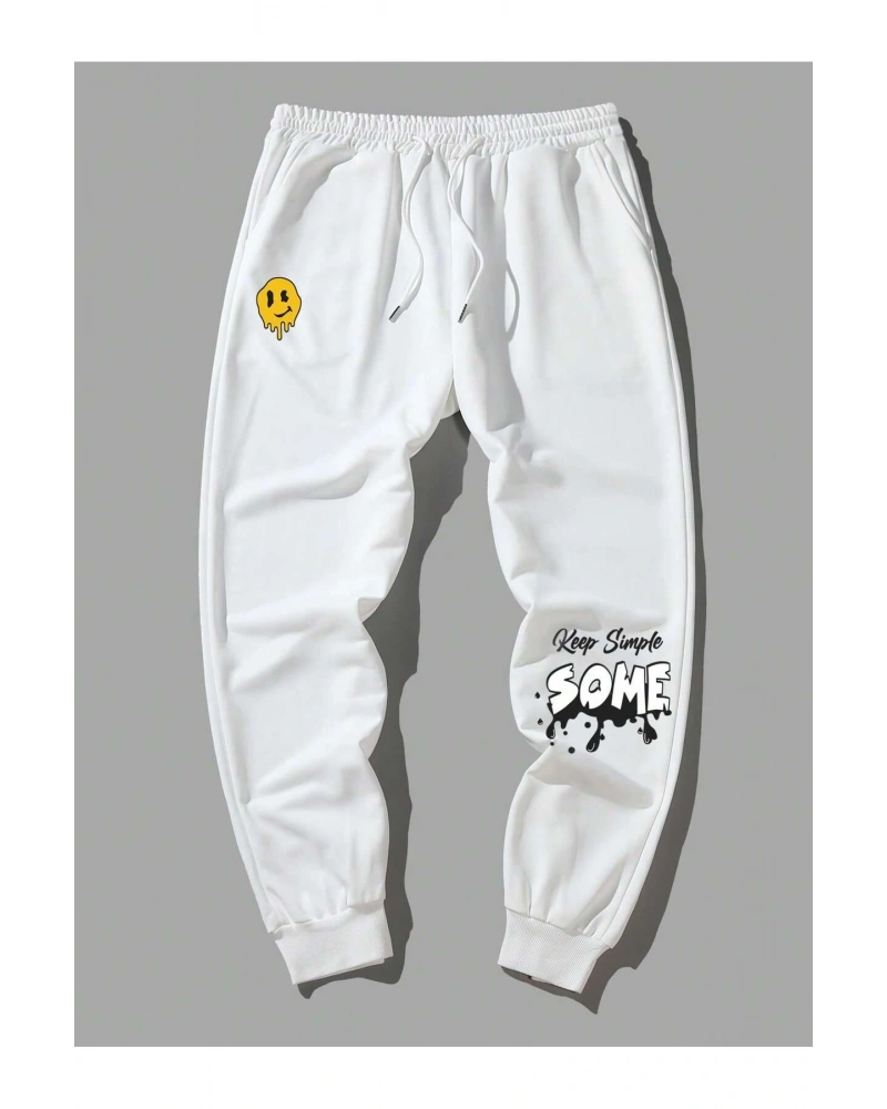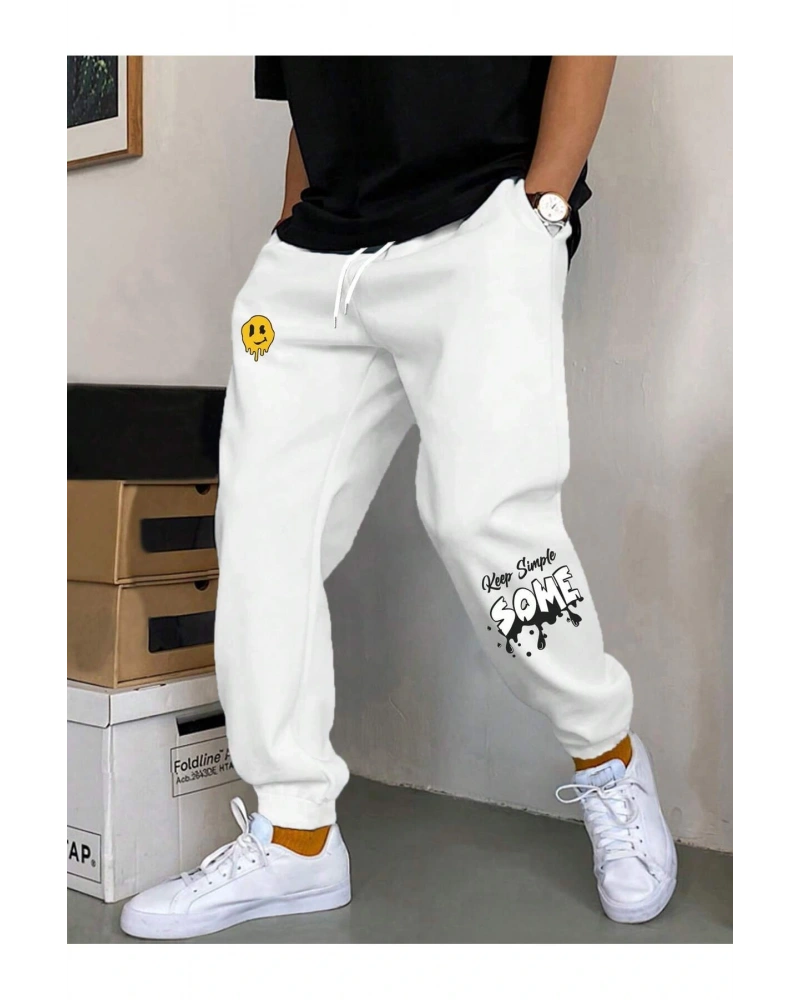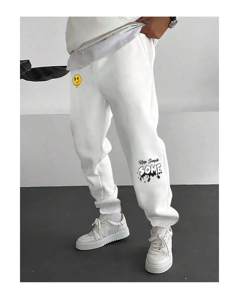 Cartoon Face & Slogan Graphic Drawstring Waist Eşofman Altı
