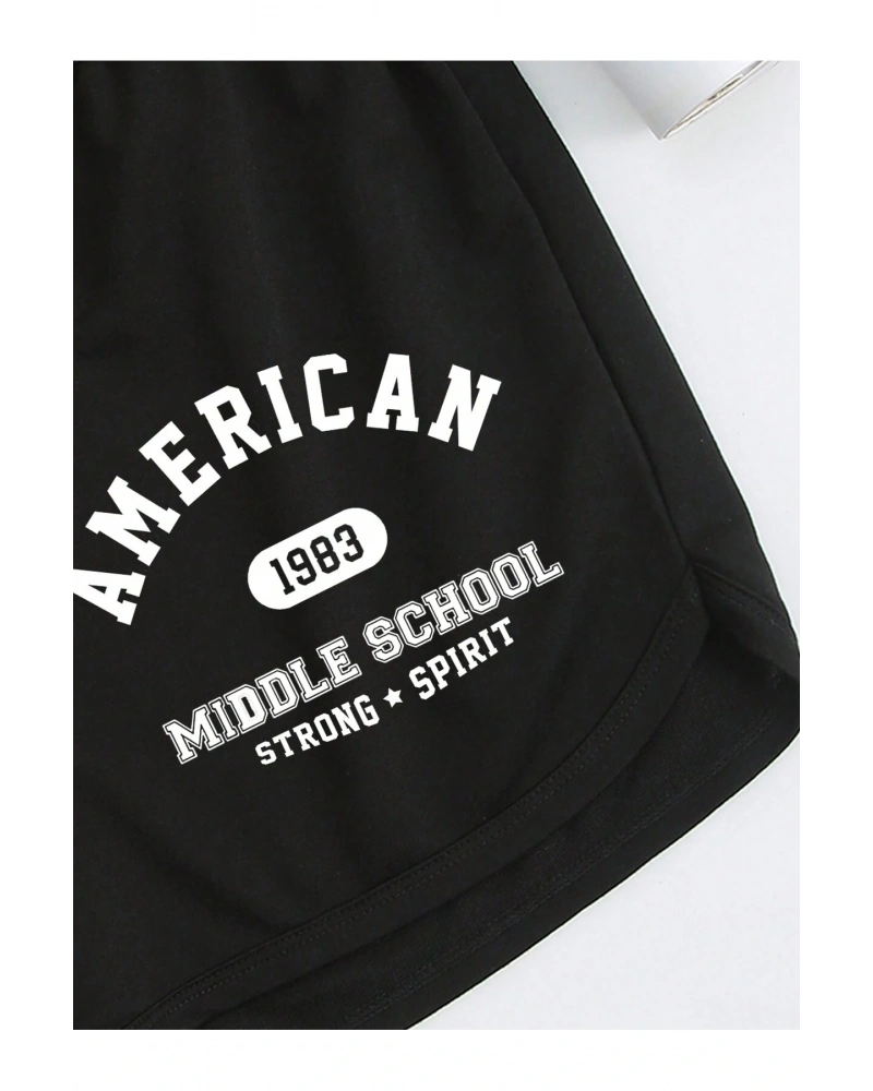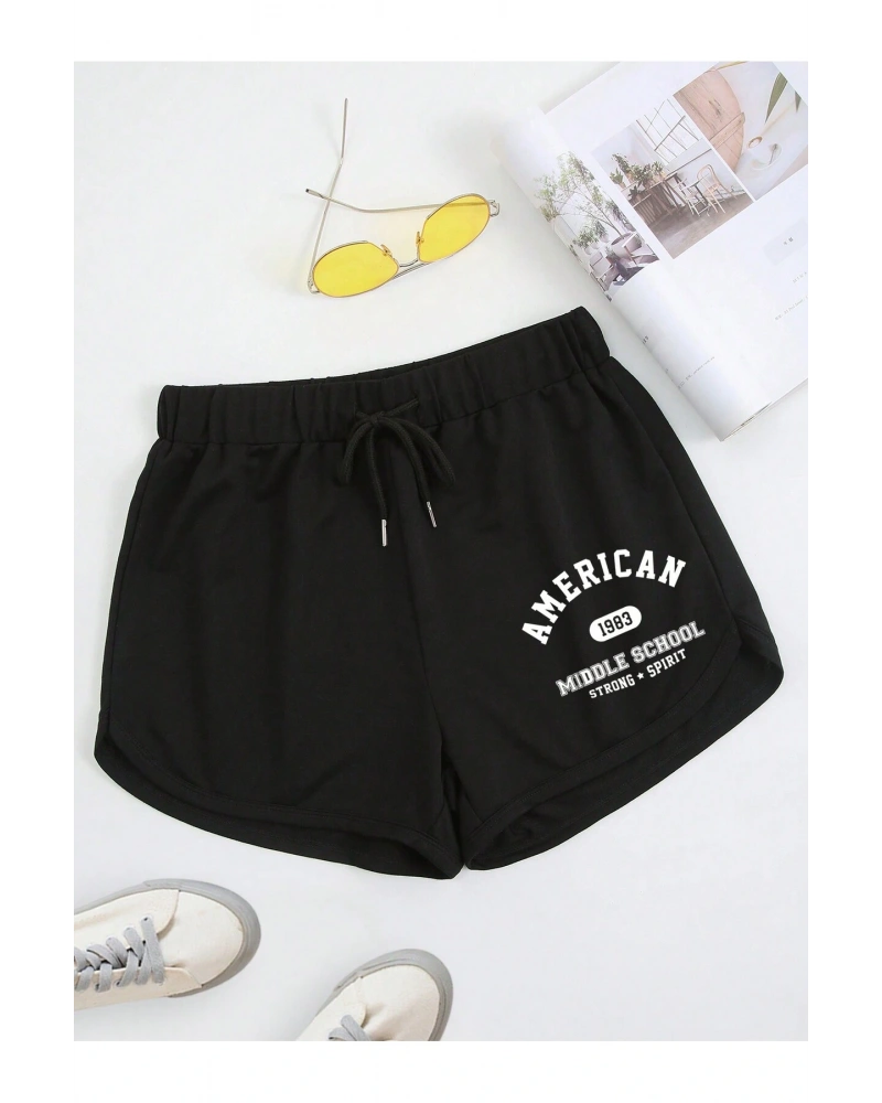 Letter Graphic Drawstring Waist Track Şort