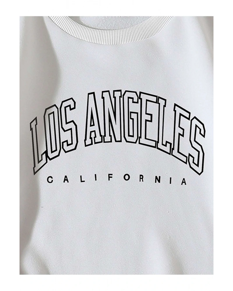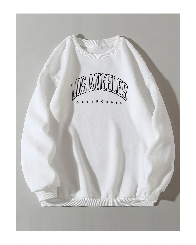 Los Angeles baskılı Üç İplik ünisex oversize Sweatshirt Füme